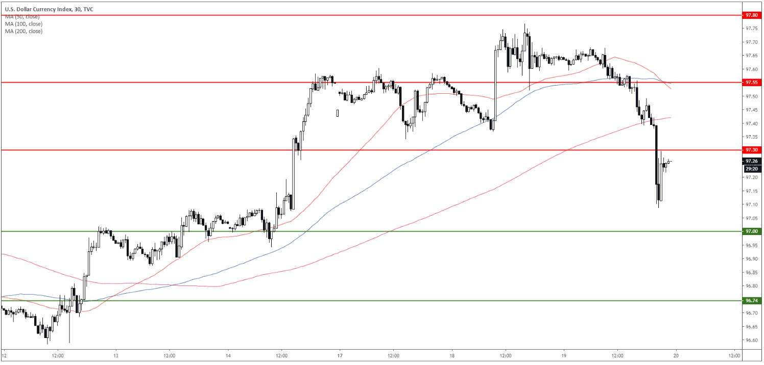 - The US Dollar Index (DXY) broke below 97.30 support.