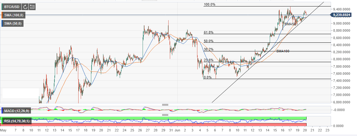 • BTC/USD recent assault above $9,400 failed to make headway towards $9,500.
