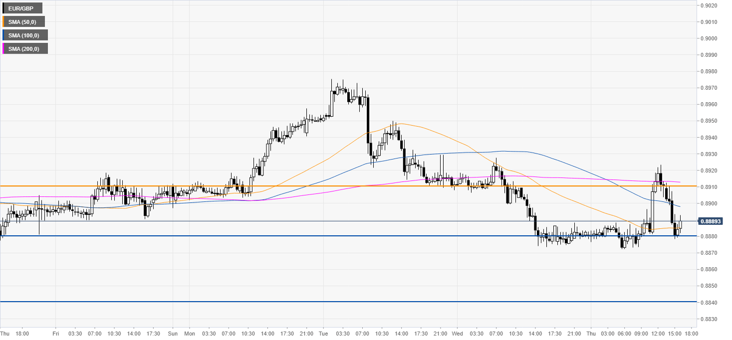 - EUR/GBP dropped to daily lows near 0.8880 support.