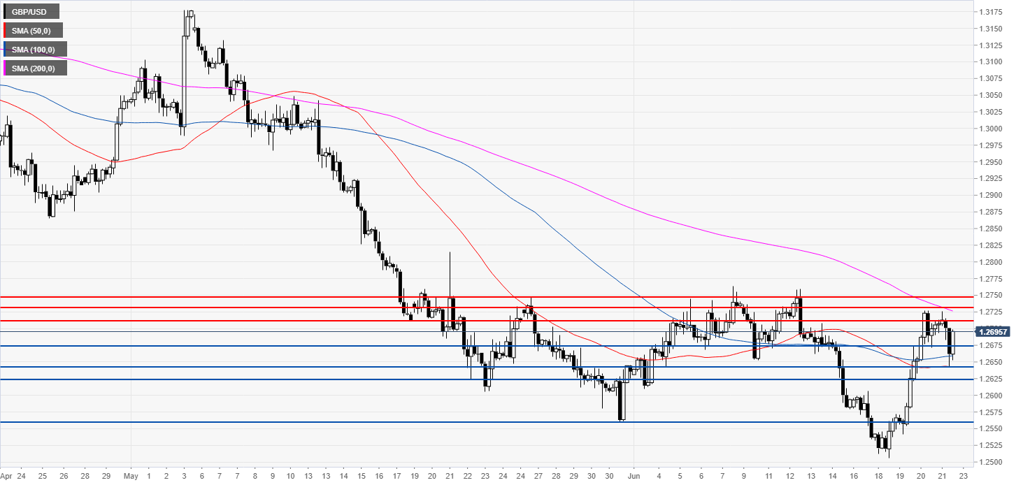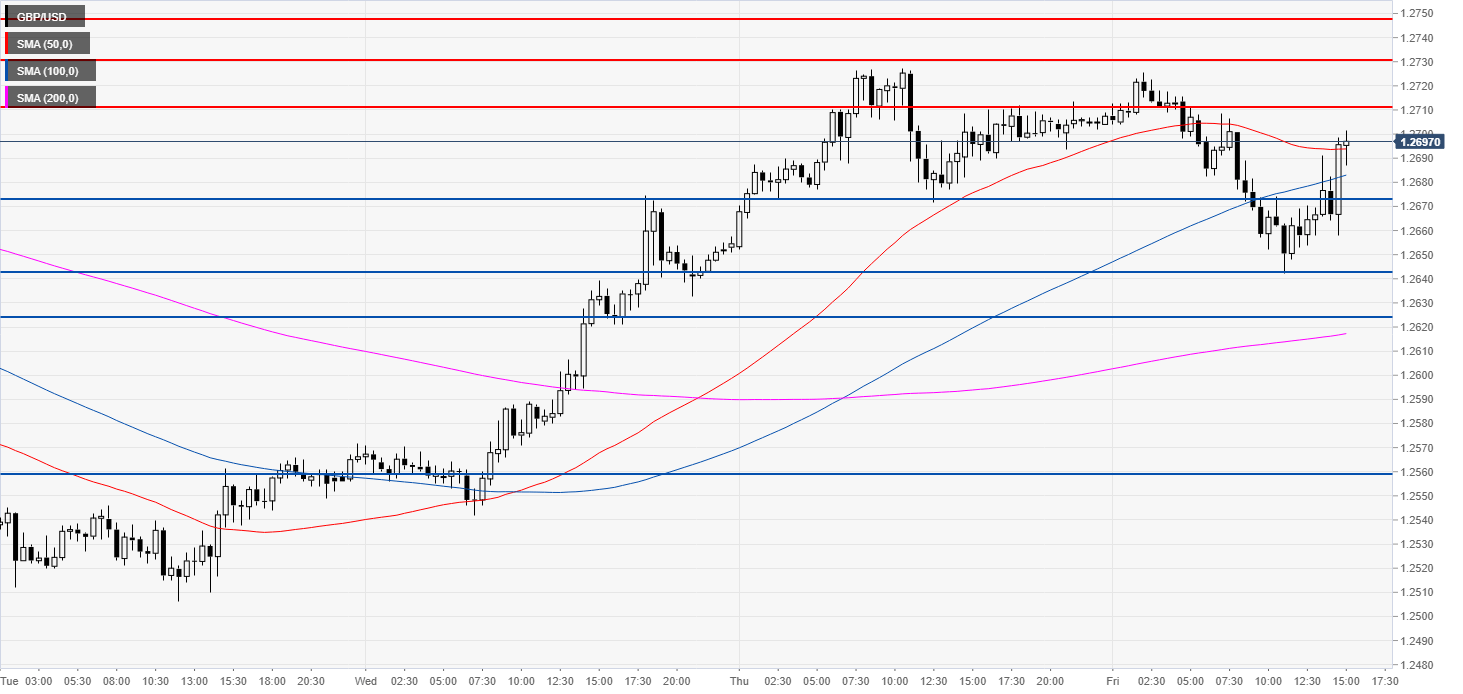 GBP/USD is in a bear trend below its main simple moving averages. The market is currently finding some resistance near the 1.2700 handle.