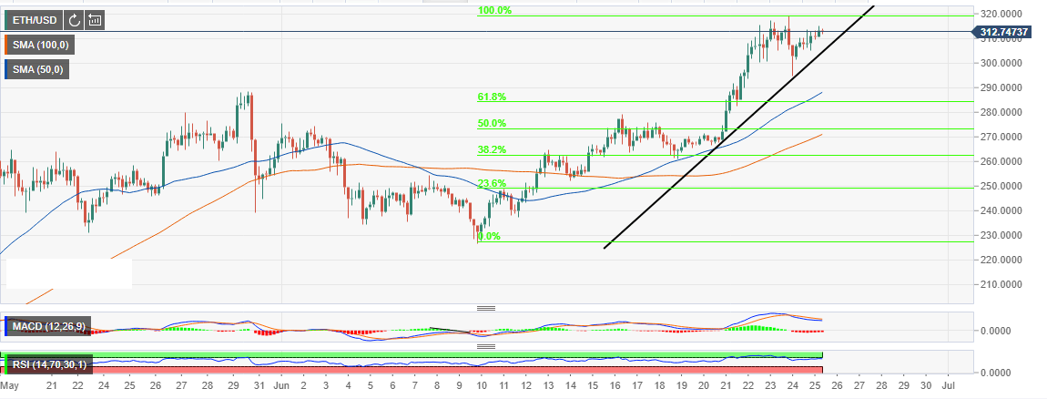 - Ethereum stays above $300 in readiness for another assault at $320 and the resistance at $326.