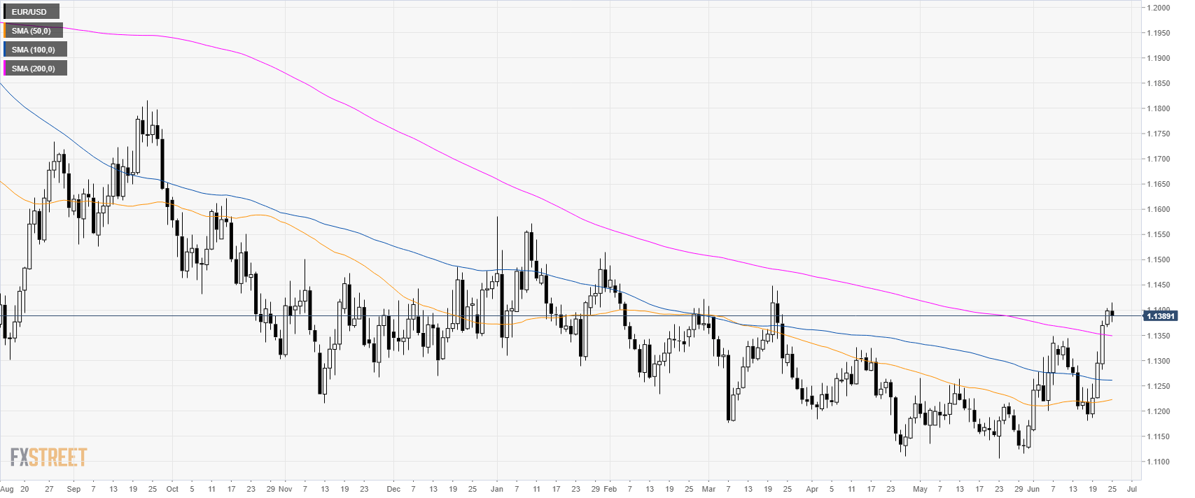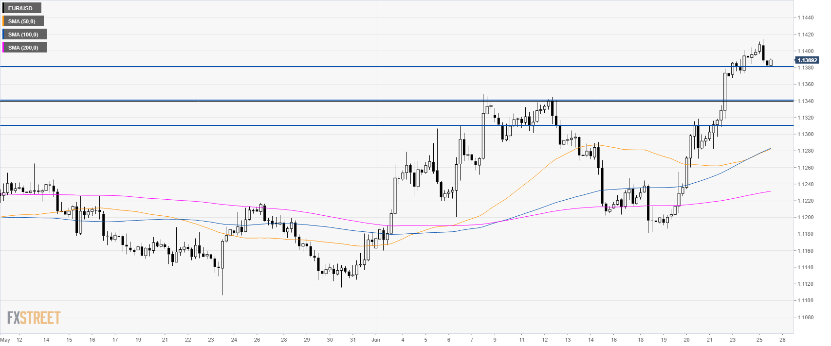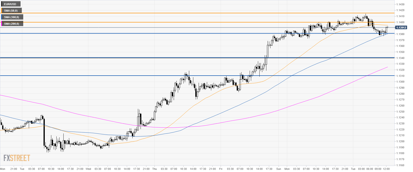 EUR/USD is trading below the 1.1400 mark and its 50 SMA. According to the Technical Confluences Indicator, resistances are at the 1.1400 figure and the 1.1418 levels.