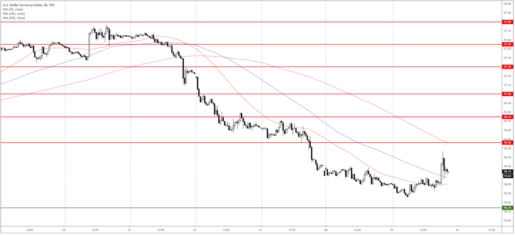 The market is correcting up above the 50 and 100 SMAs. DXY remains under pressure below the 96.46 resistance.
