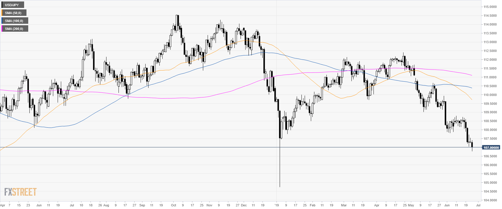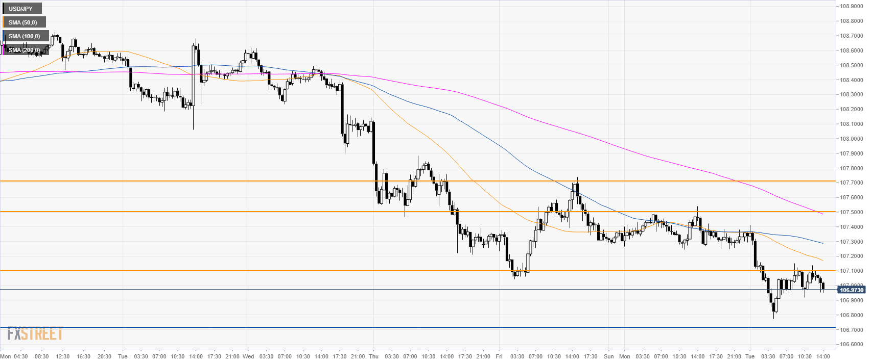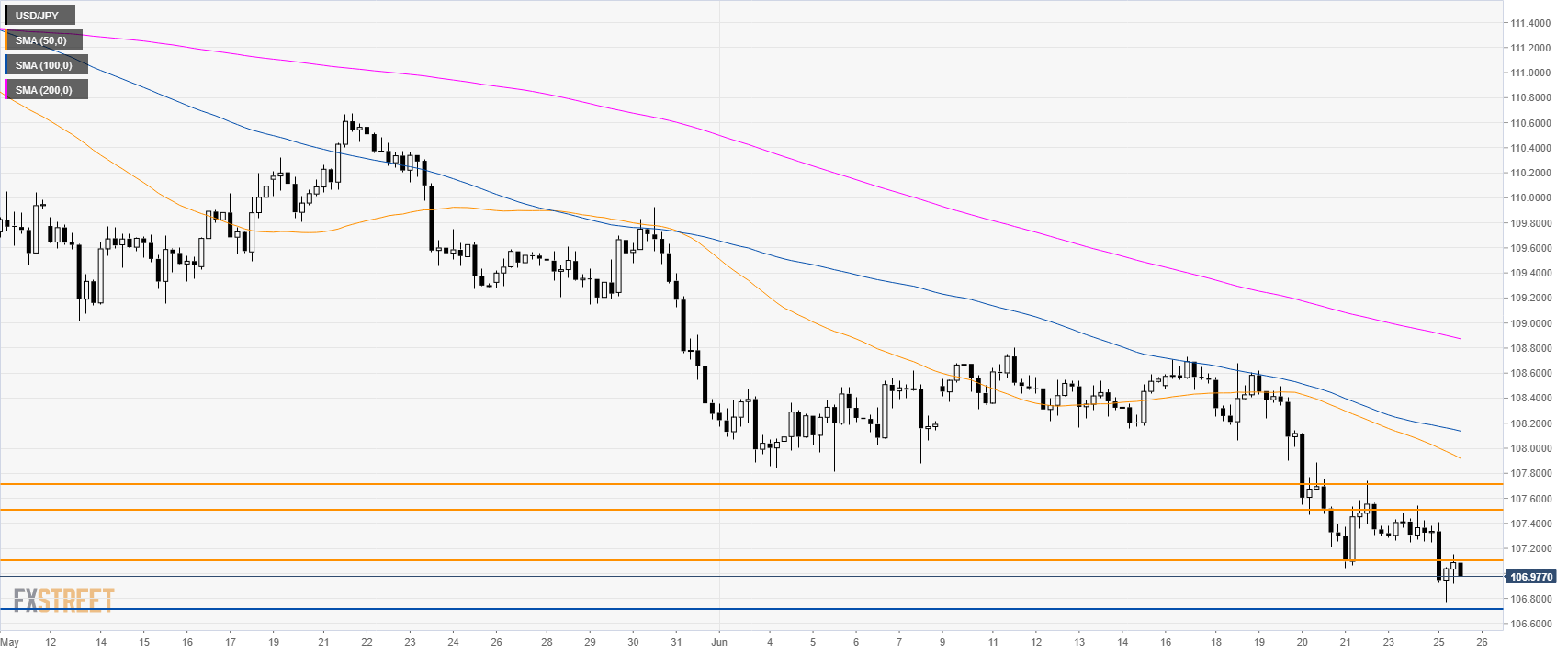 USD/JPY is trading below its main SMAs suggesting bearish momentum in the medium term. The market is finding some support near 107.00.