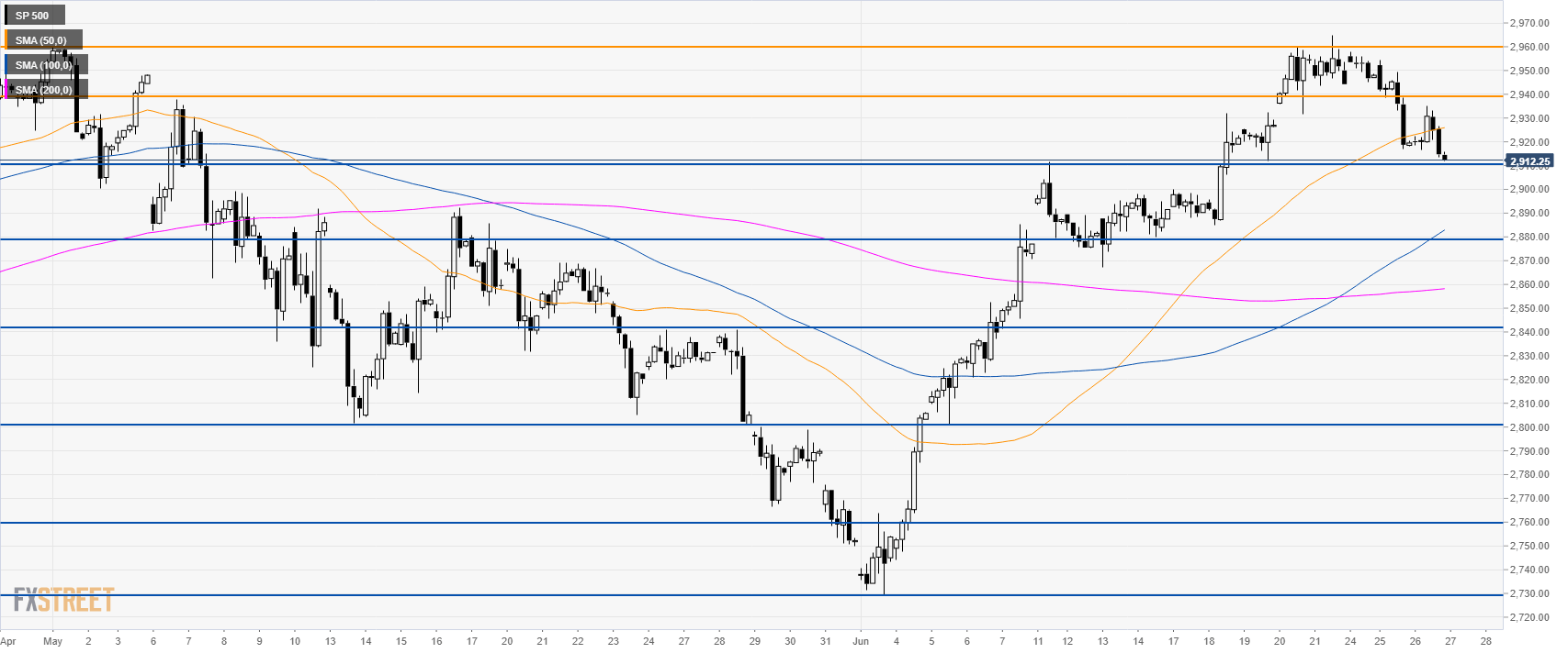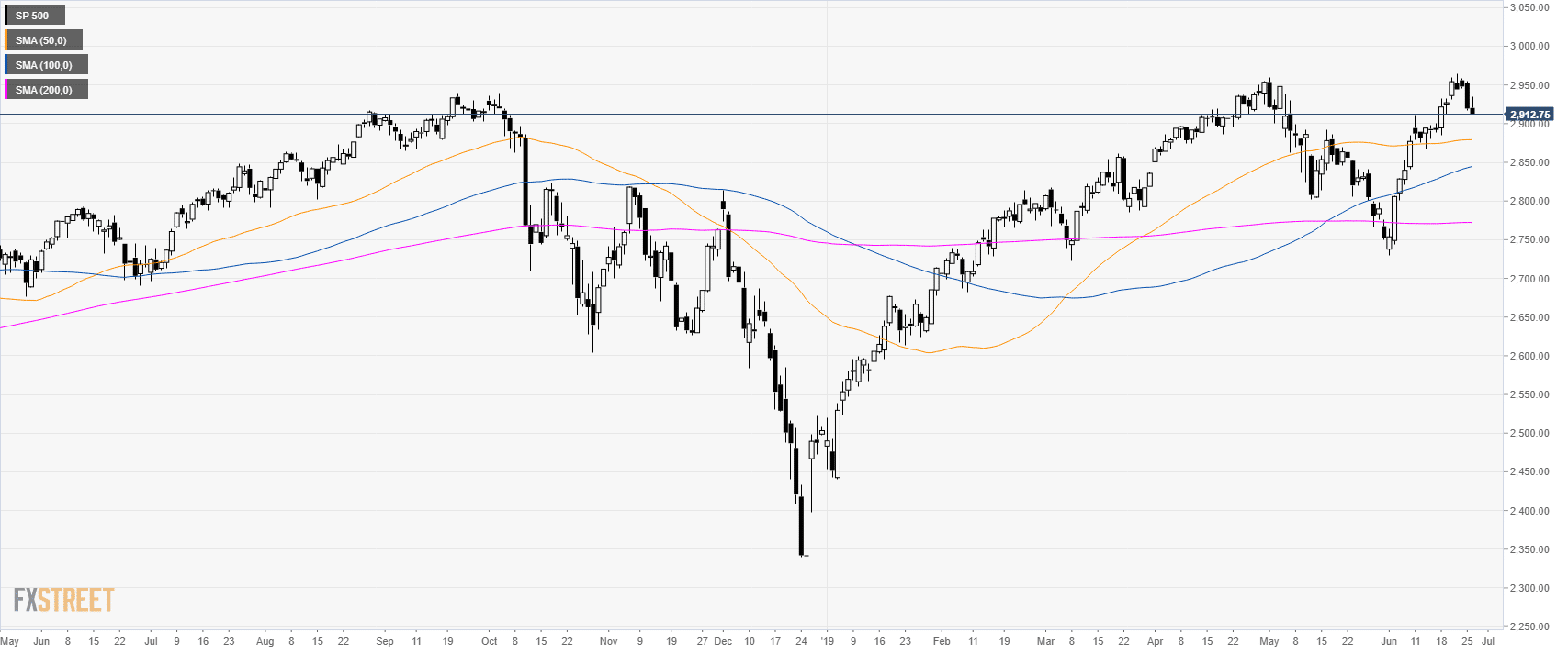 Last week, the S&P500 found resistance below 2,965.00 new all-time high. The market is retracing and trading at 5-day lows.