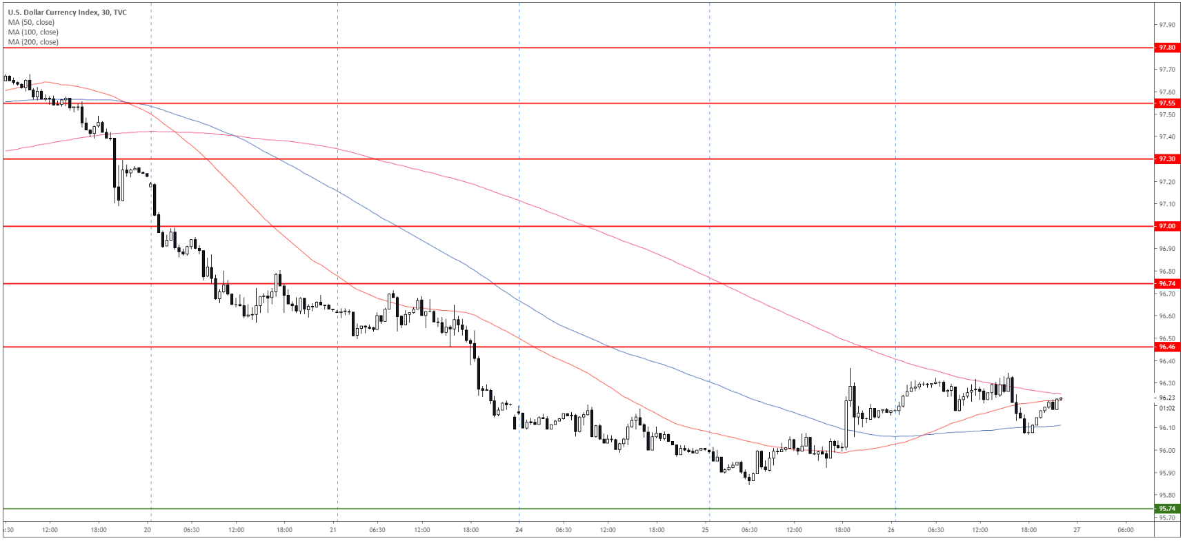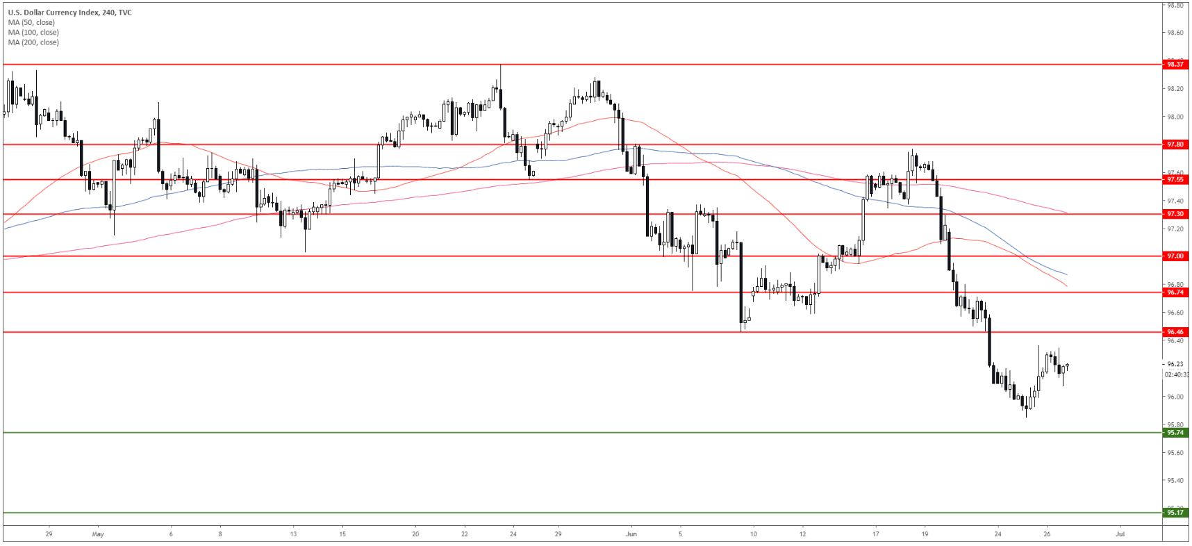 The market is correcting up as the 50 SMA is crossing above the 100 SMA. However, DXY remains under pressure below the 96.46 resistance.