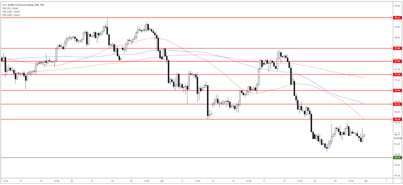 DXY is under pressure below its main SMAs suggesting bearish momentum in the near term. Sellers want to reach 95.74 and 95.17 on the way down. Immediate resistance is at 96.46 and 96.74.