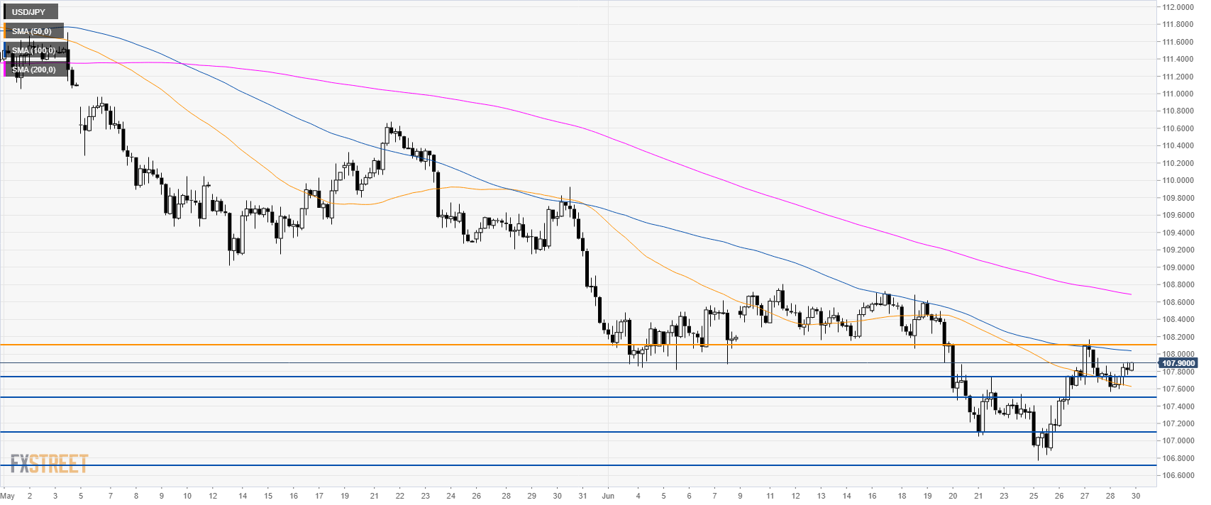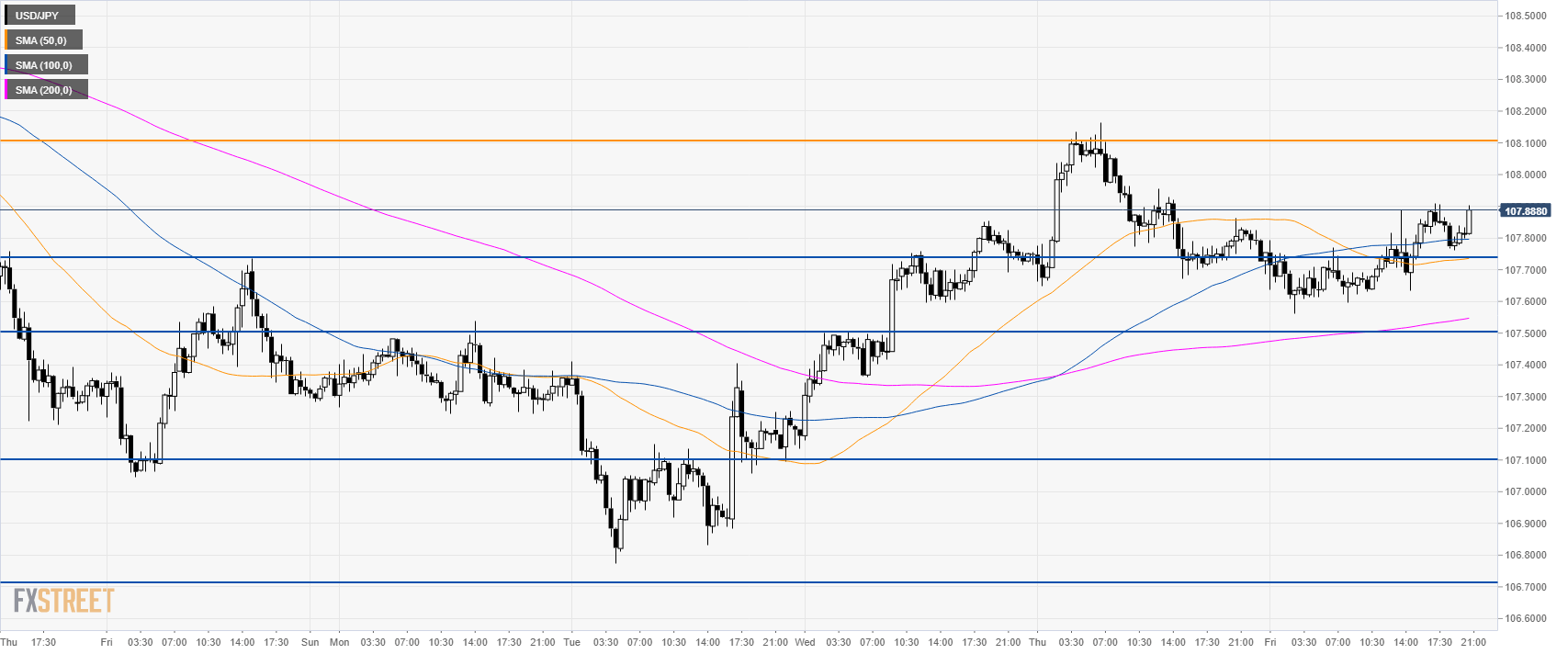 USD/JPY is gaining some strength above its 50 SMA. Support is at 107.50, 107.10 and 106.70, according to the Technical Confluences Indicator.