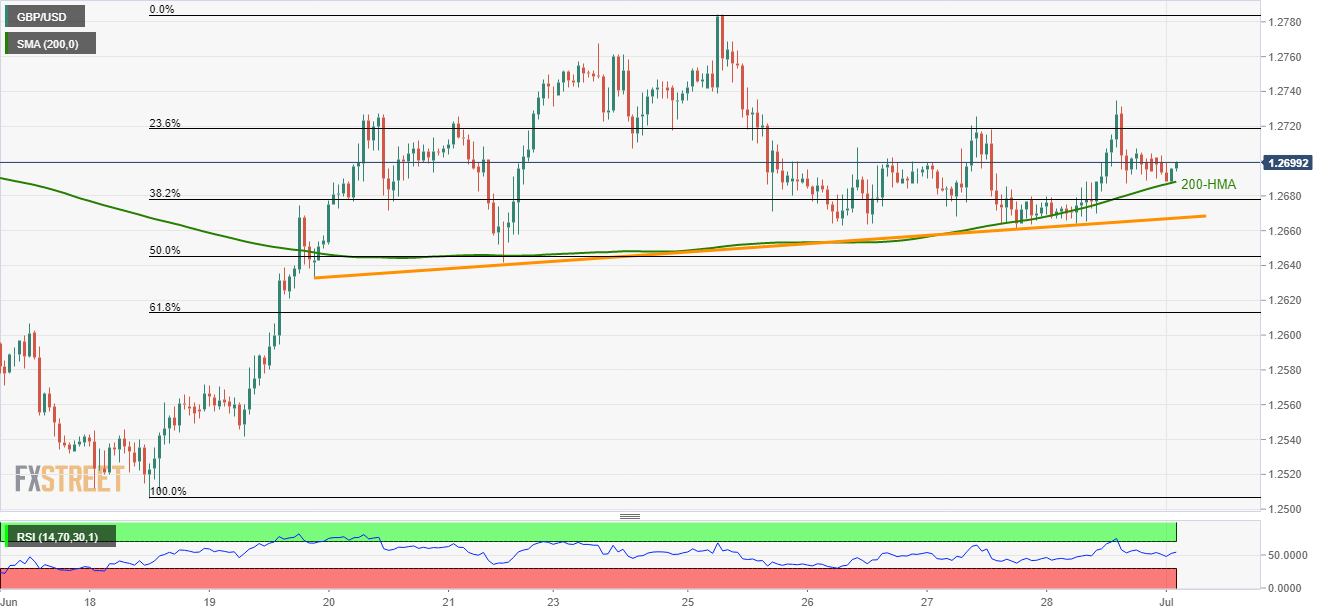 With its repeated bounces off the 200-hour moving average (200-HMA), the GBP/USD is taking the bids near 1.2700 during the early Asian session on Monday.
