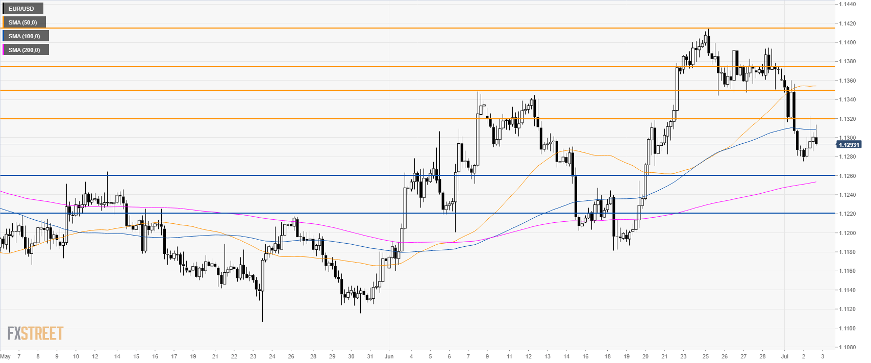 - EUR/USD is under bearish pressure below the 1.1320 resistance.