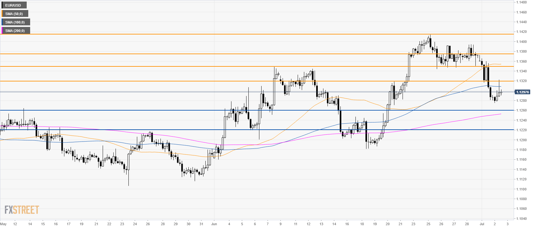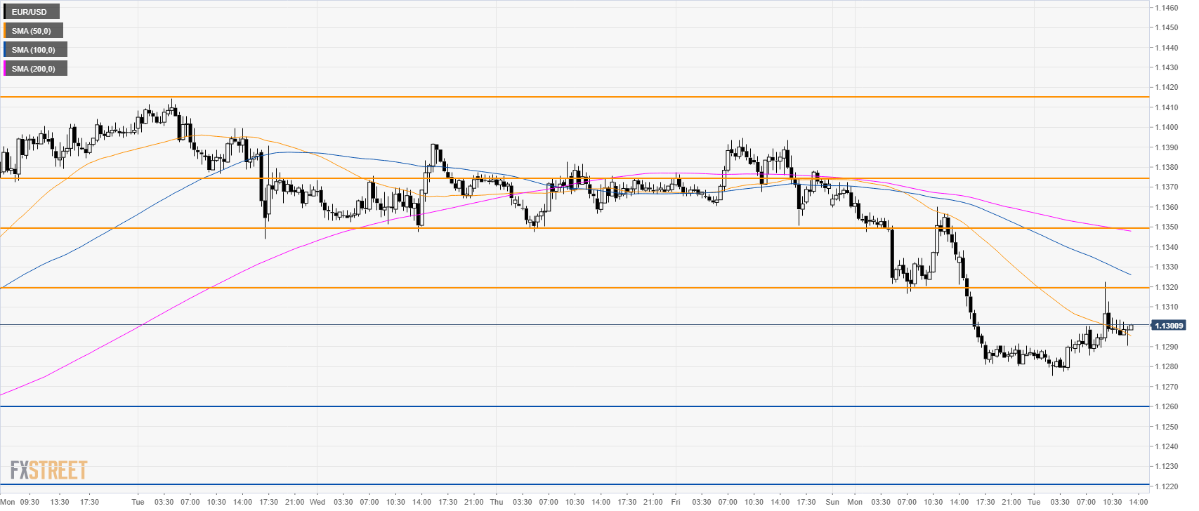 EUR/USD is trading below its main SMAs, suggesting bearish momentum in the near term. Resistances can be seen at 1.1320, 1.1348 and the 1.1375 level, according to the Technical Confluences Indicator.