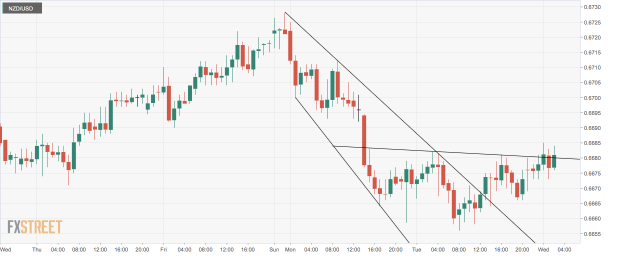 NZD/USD is attempting a break above the 50-hour moving average of 0.6680 at press time, having witnessed a falling channel breakout on the hourly chart on Tuesday.