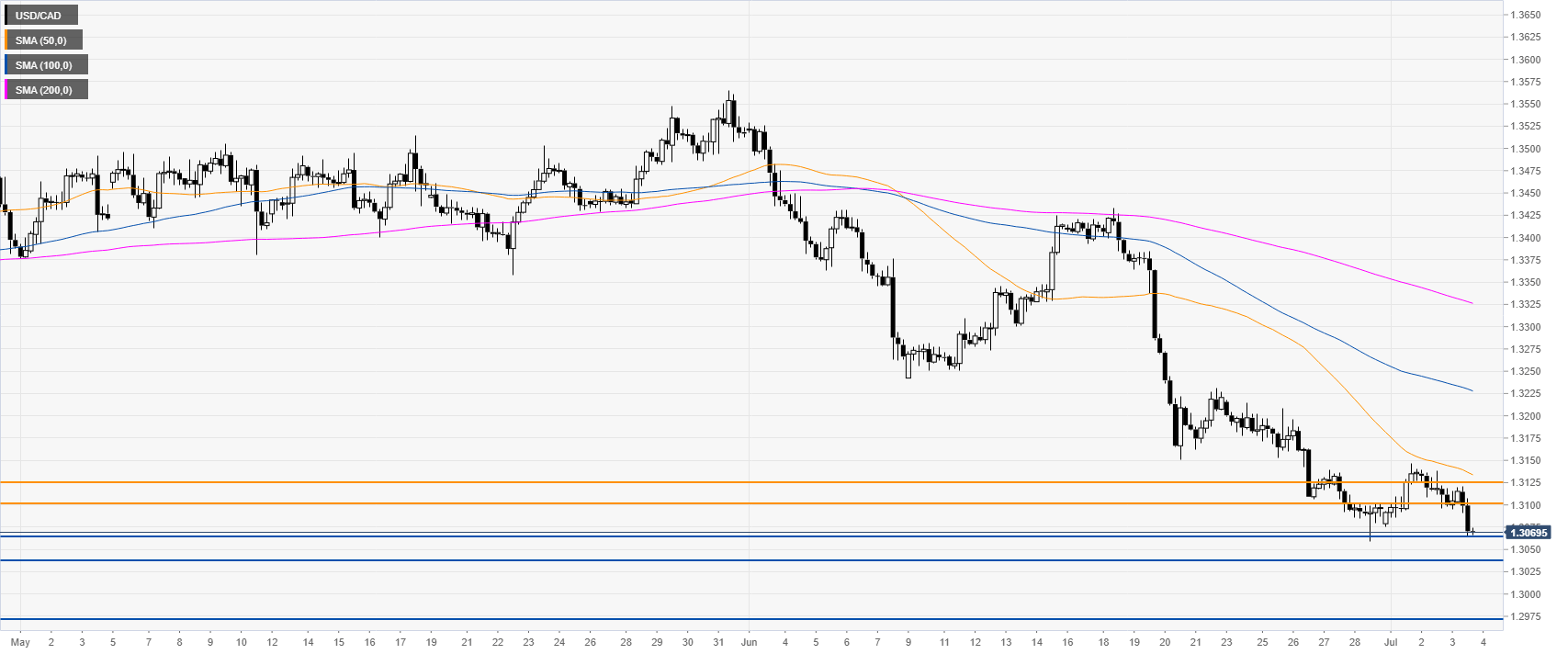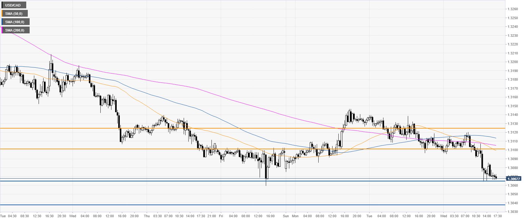 USD/CAD is challenging multi-month support near 1.3064. USD/CAD is trading below the main daily simple moving averages (DSMAs).