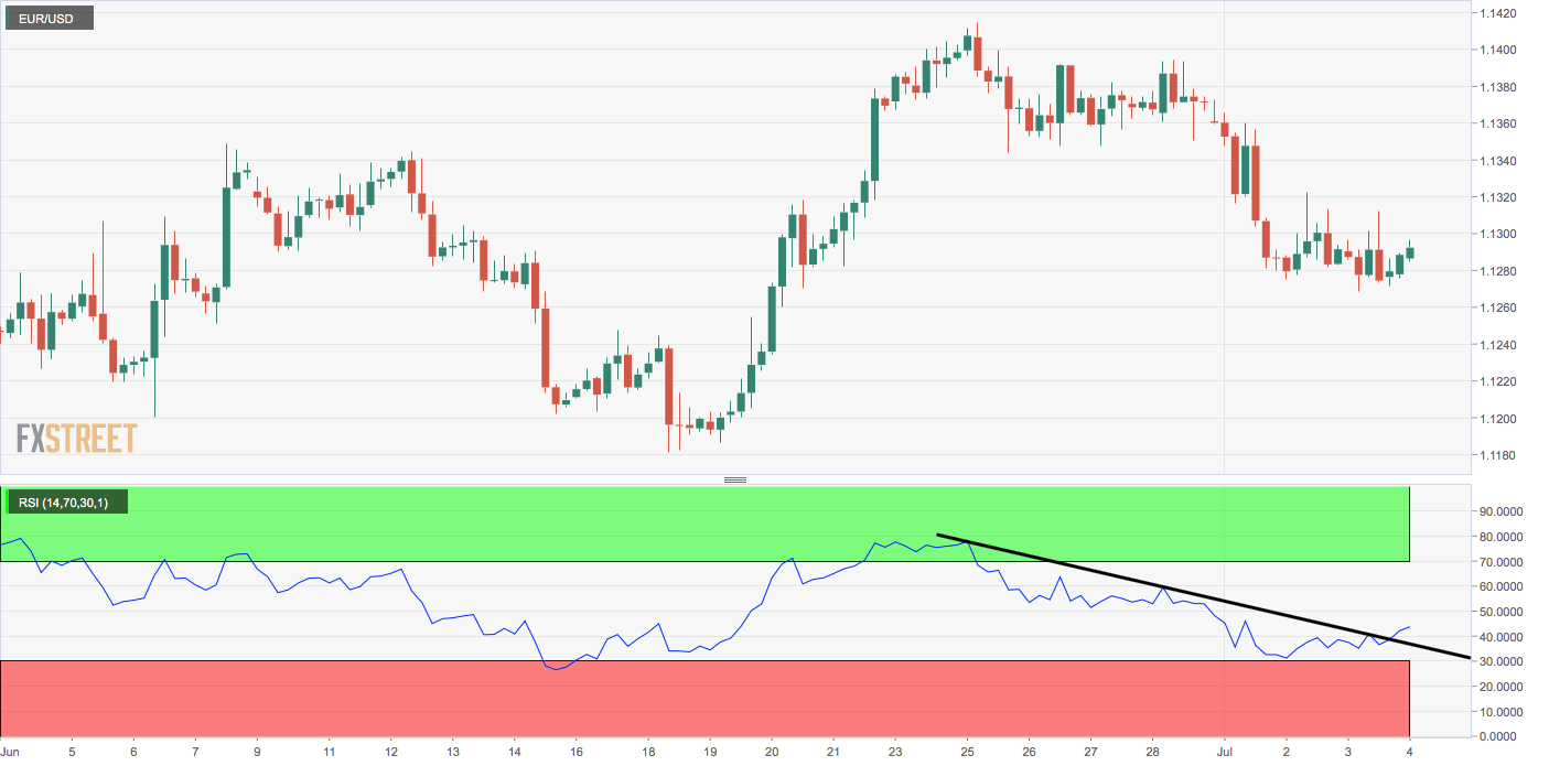 Further, the RSI on the 4-hour chart has breached the descending trendline, indicating the pullback from recent highs above 1.14 has ended.