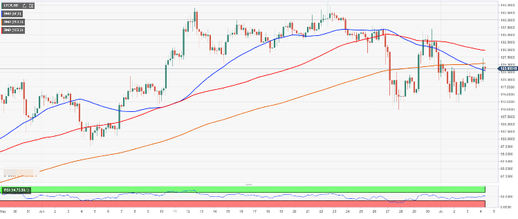 Litecoin price analysis: LTC/USD jumps above $120.00, not out of the woods yet