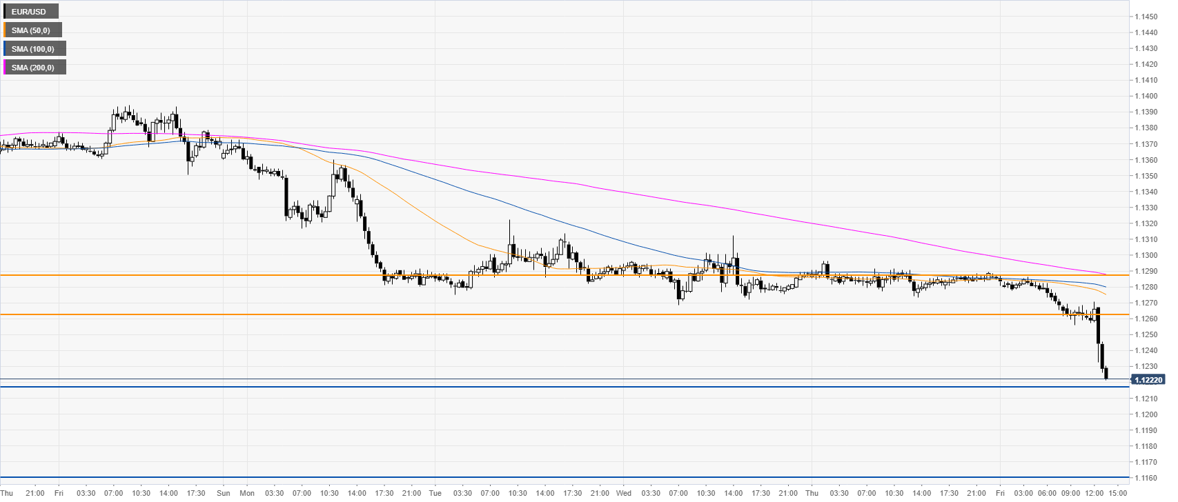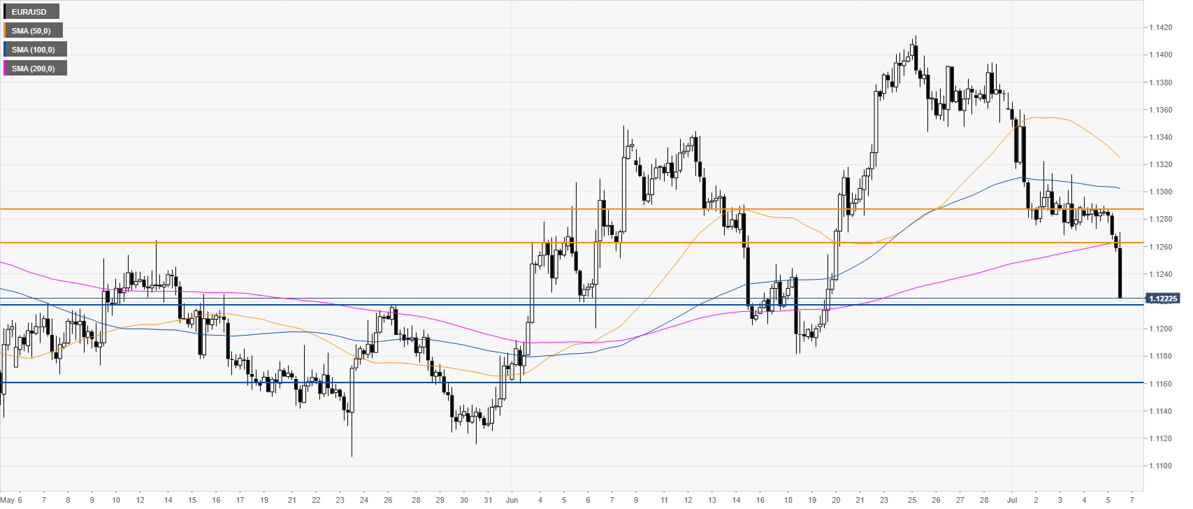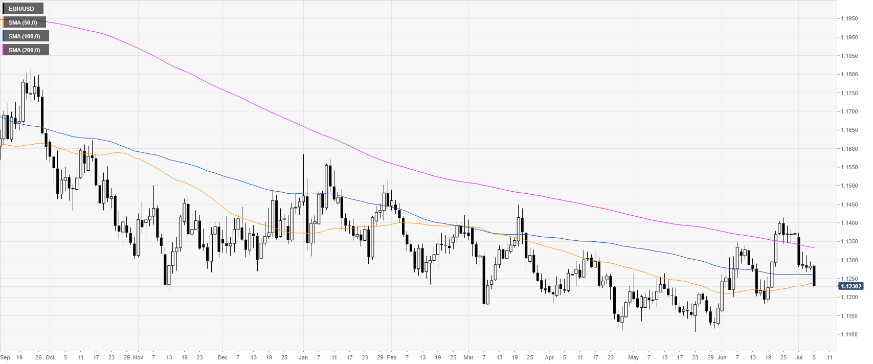 EUR/USD is falling below 1.1250 and its main daily simple moving averages (DSMAs).