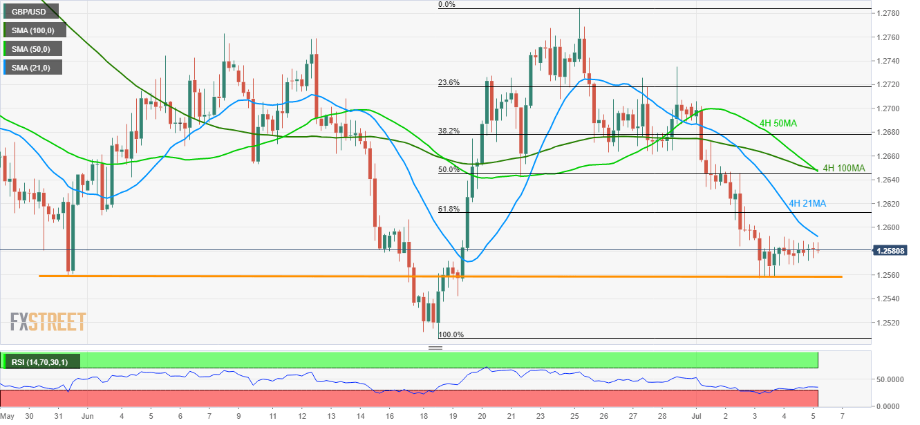 GBP/USD technical analysis: Range bound between 1.2560, 4H 21MA