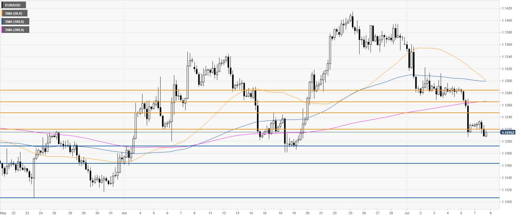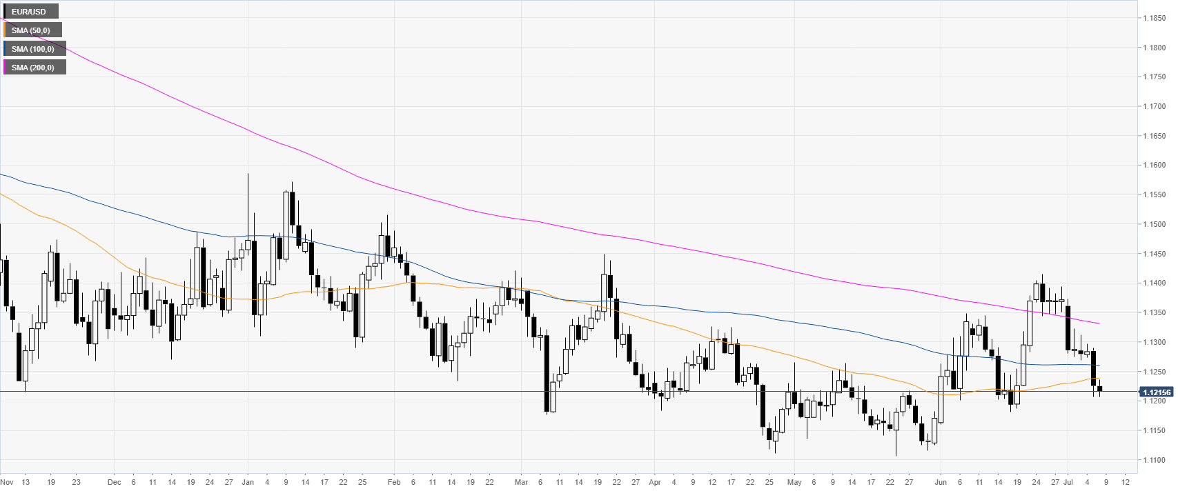 - EUR/USD is under bearish pressure below the 1.1220 level.