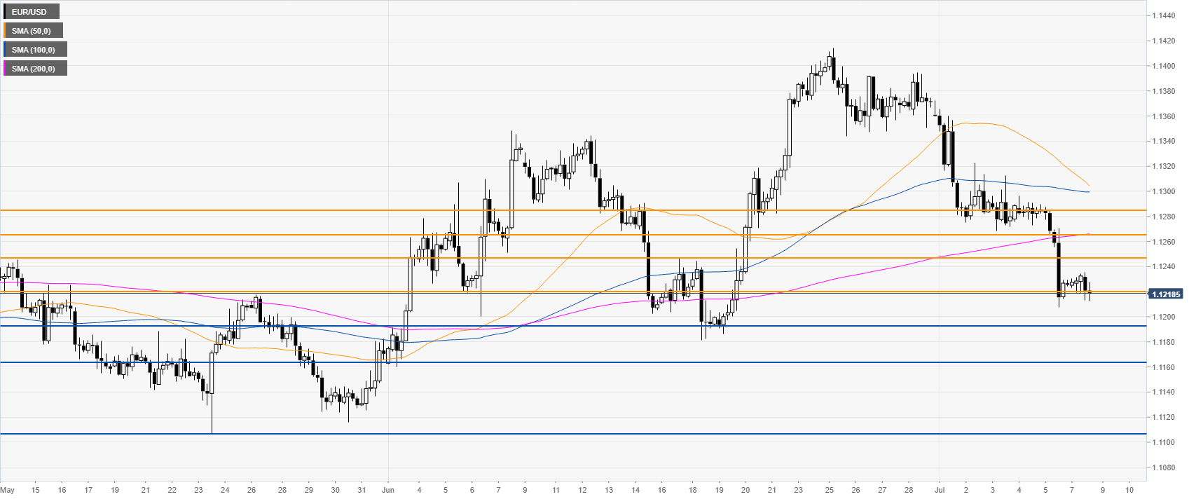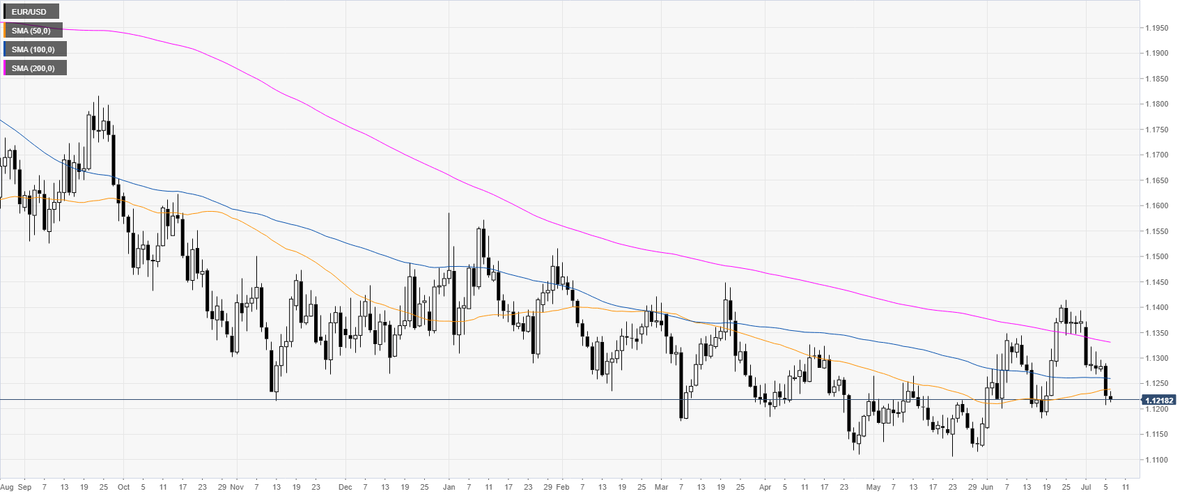 - EUR/USD is under bearish pressure near the 1.1200 level.