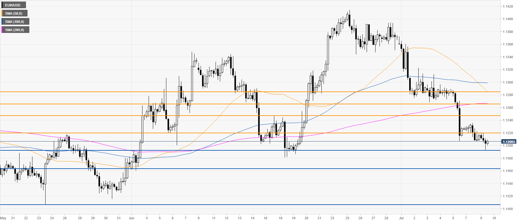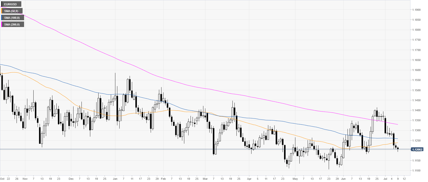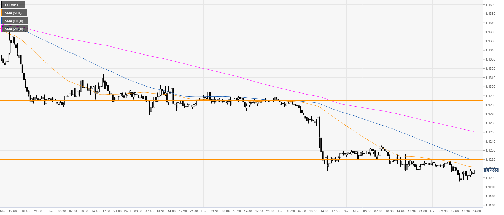 EUR/USD technical analysis: Euro under pressure below 1.1220 in the New York session