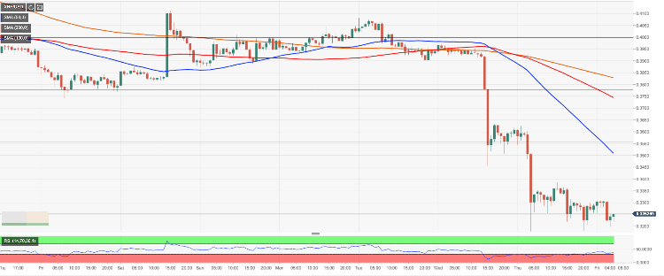 Bears have established full control over XRP/USD recently as the coin has collapsed from above $0.40 at the beginning of the week and touched the area below $0.32 on Thursday. At the time of writing, XRP/USD is changing hands at $0.3230, down over 3% in recent 24 hours. The total market value of the coin was reduced to $13.8 billion, while an average daily trading volume is registered at $1.8 billion.