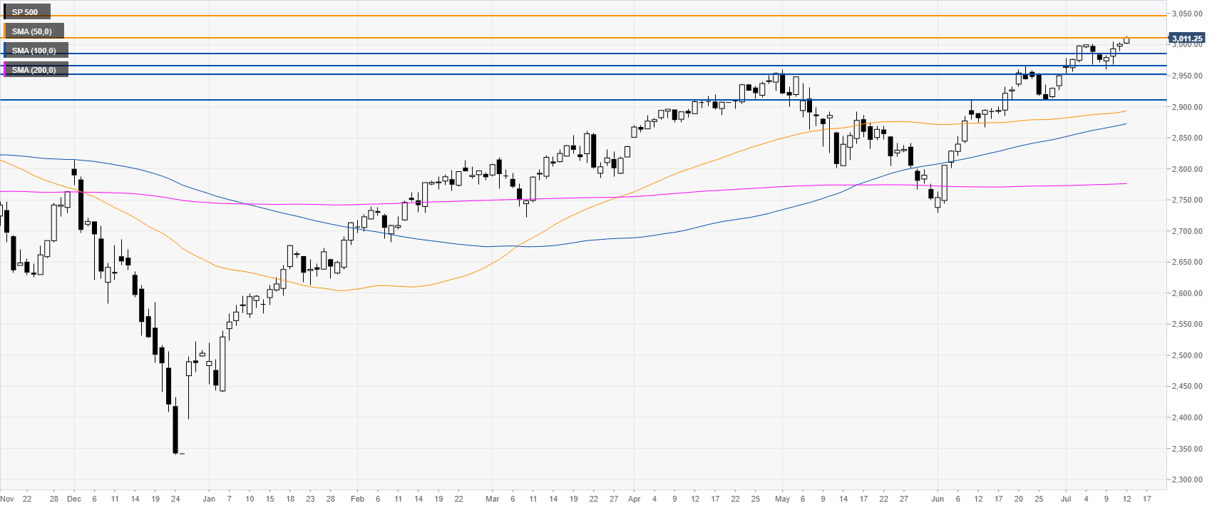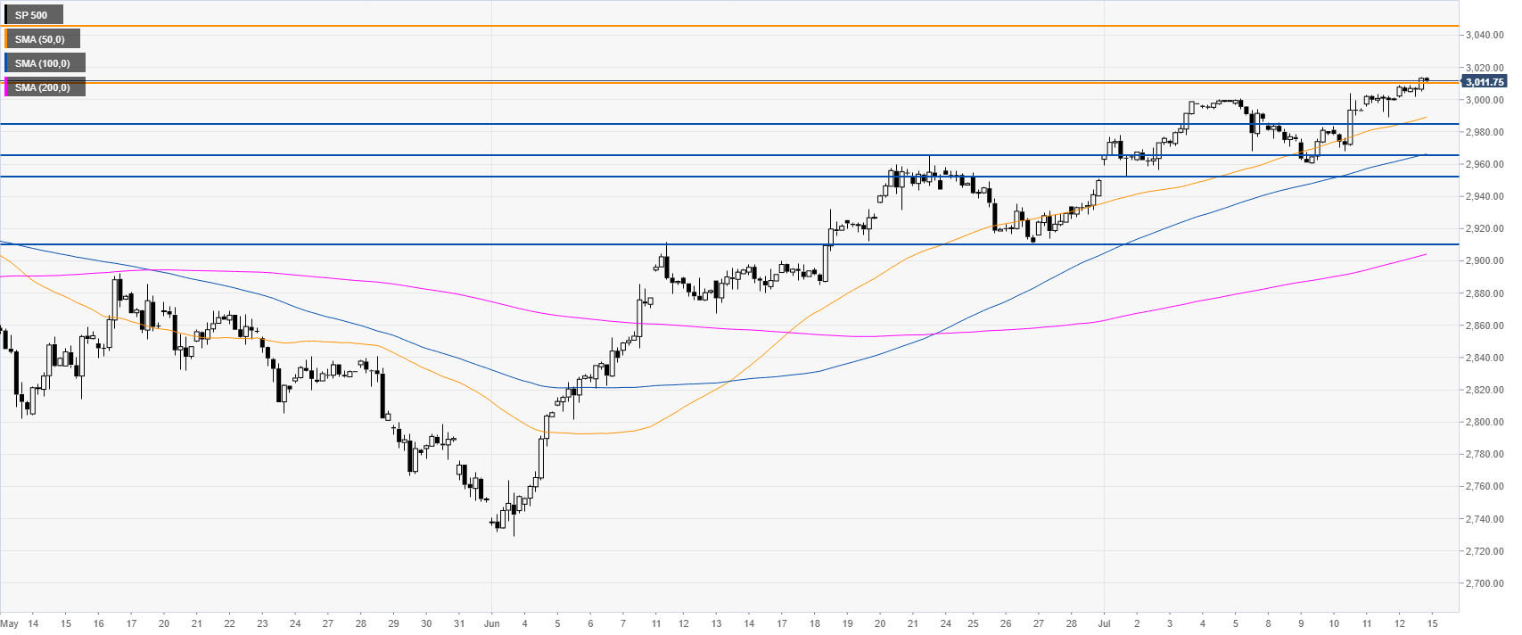 The S&P500 is trading into uncharted territories as it has reached this Friday 3,014.25.