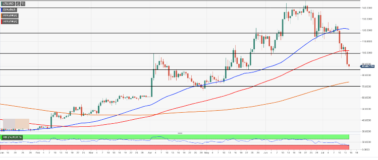 Litecoin bears managed to push the price well below a critical $100.00 handle. This development has darkened the technical picture and pushed the price towards the lowest level since May 23.