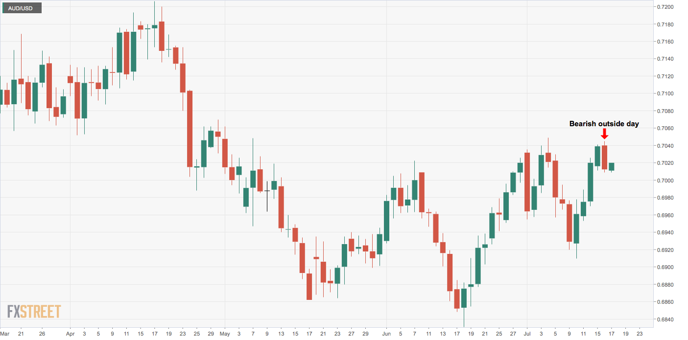 AUD/USD technical analysis: Bearish outside day makes today’s close pivotal
