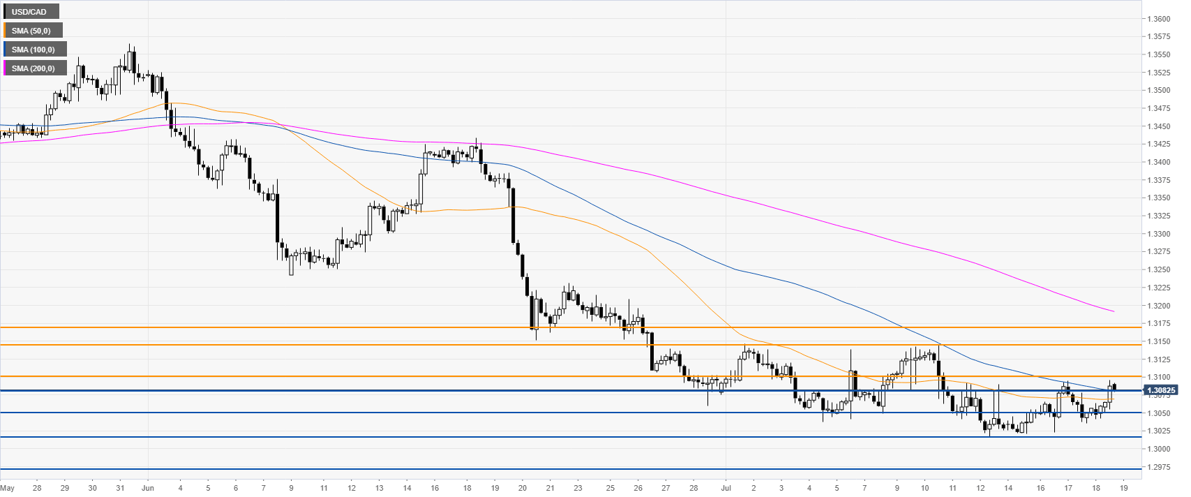 USD/CAD is trading between the 50 and 100 SMAs suggesting a consolidation in the medium-term. Bulls need to overcome 1.3100 to reach 1.3150/70 on the way up, according to the Technical Confluences Indicator.