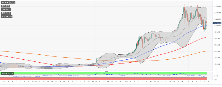 On the downside, a sustainable move below $10,000 handle will bring the short-term sellers back to the market. Once the price is below this handle, the bearish momentum will gain traction and bring $9,000 back into focus. Local support is also created at $9,450 (the lower line of 1-day Bollinger Band).