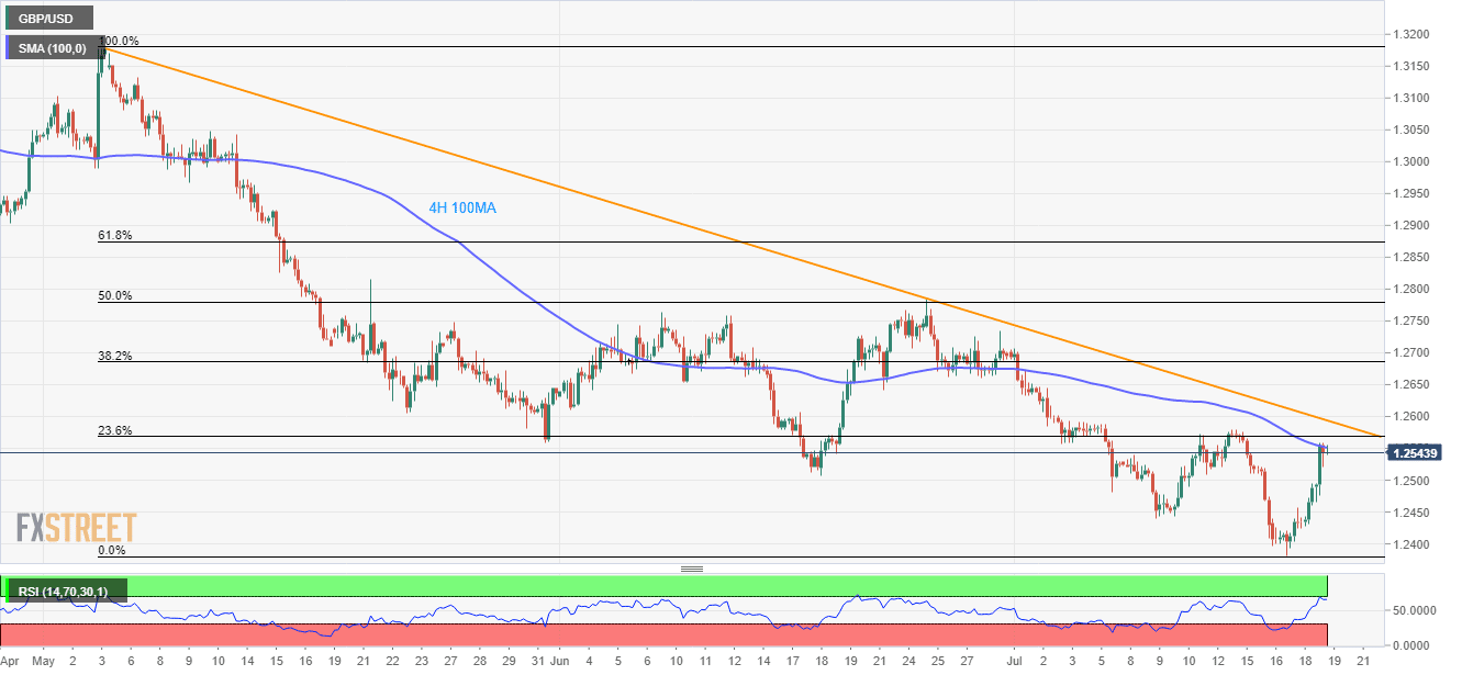 The GBP/USD pair’s recent recovery is currently struggling with the 100-hour moving average (4H 100MA) while taking the rounds to 1.2545 on early Friday.