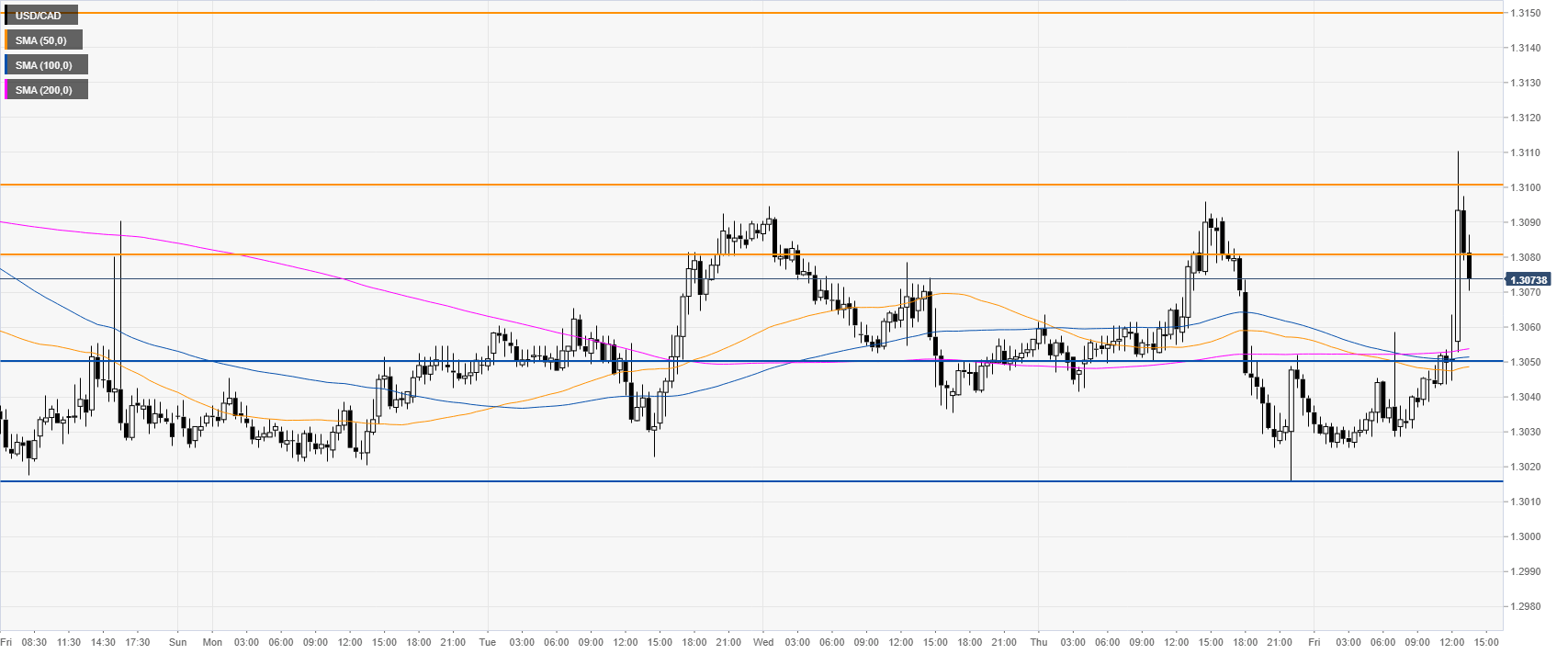 USD/CAD Technical analysis: Challenging the 1.3100 figure on disappointing Canadian Retail Sales