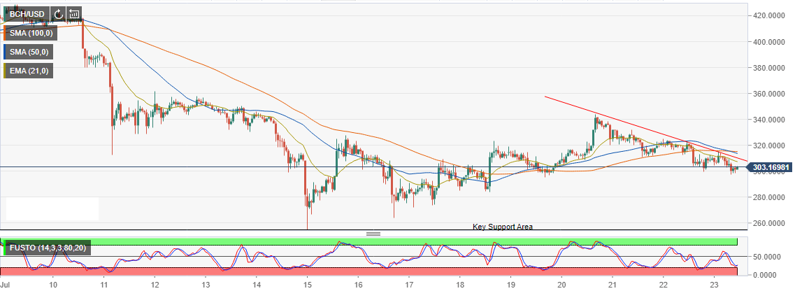 - The ability to correct higher will depend on BCH/USD capacity to defend $300 key support.