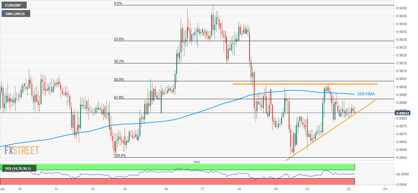 Despite repeated failures to slip beneath 2-day long rising support-line, EUR/GBP upside is likely to be tamed by short-term key resistances as it takes the rounds to 0.8980 ahead of the European open on Tuesday.