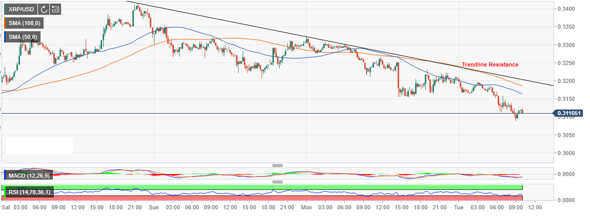 - XRP/USD extended the losses under $0.31 during Asian trading hours on Tuesday.