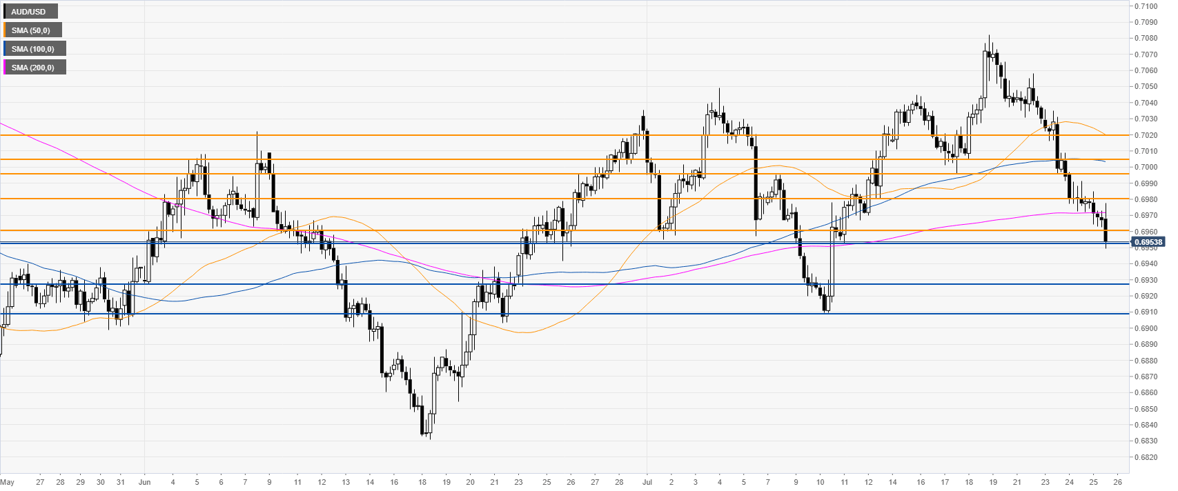 Home AUD/USD technical analysis: Aussie challenges daily lows near 0.6952 level