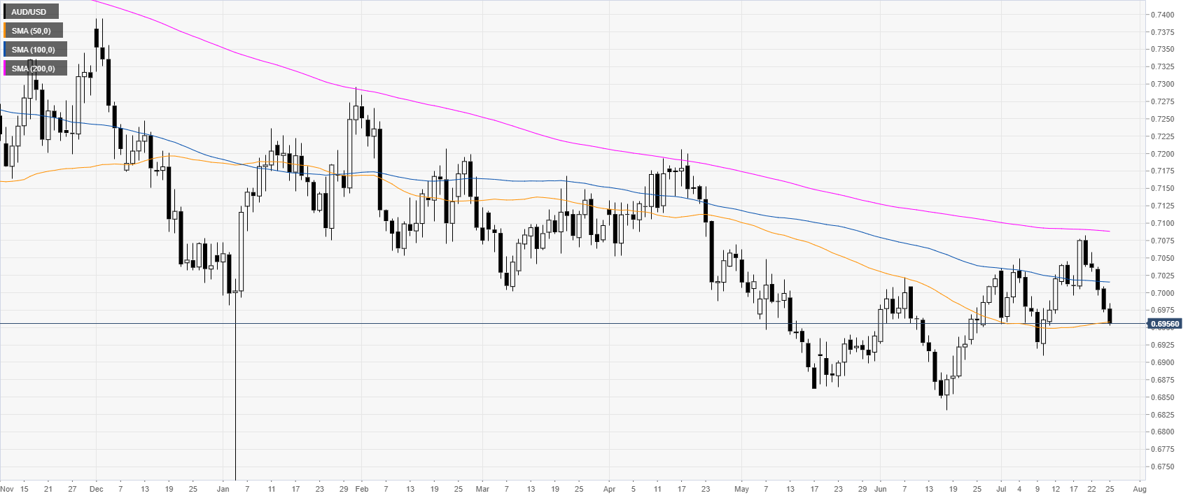 AUD/USD technical analysis: Aussie challenges daily lows near 0.6952 level
