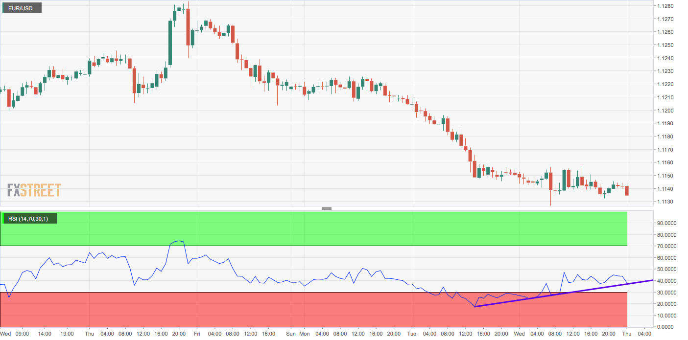 Therefore, the new found support near 1.1130 will likely be breached to the downside in the next few hours. Notably, a violation of the minor ascending trendline on the hourly chart relative strength index could pave way for a fresh sell-off toward 1.11.