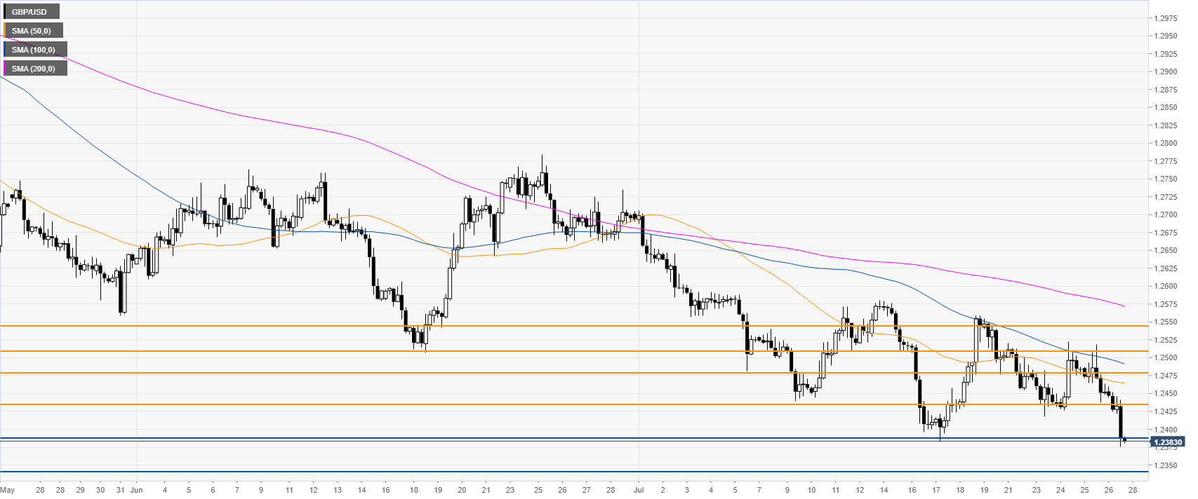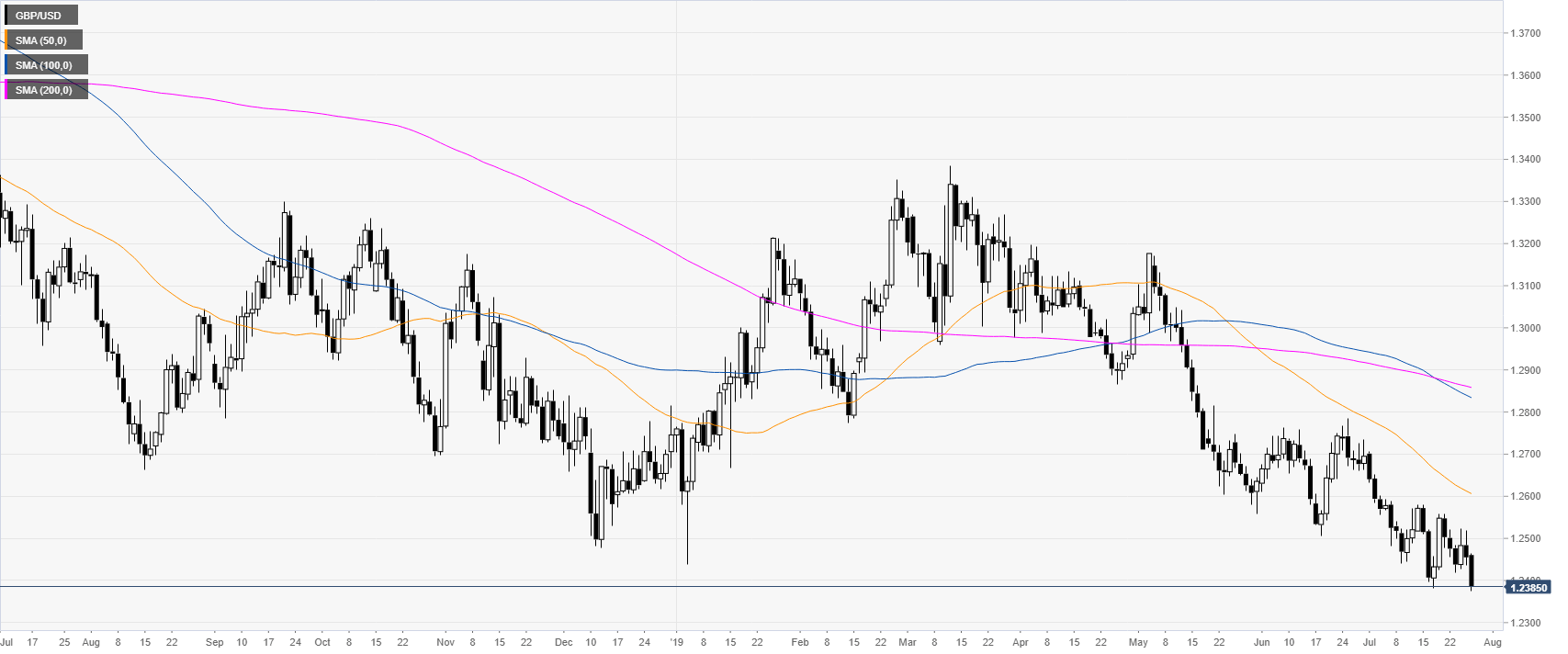 GBP/USD technical analysis: Cable hits a new 2019 low at 1.2376 as the week comes to an end