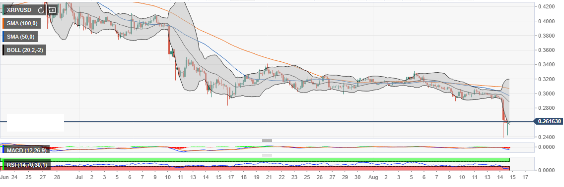 The intense pressure on key support levels saw $0.24 support tested for the first time since August 2018. Although $0.24 has been rock-solid support, volatility is still very high across the market. For this reason, If Ripple fails to correct above $0.30 in the short-term, potential for declines towards $0.2 is immense.