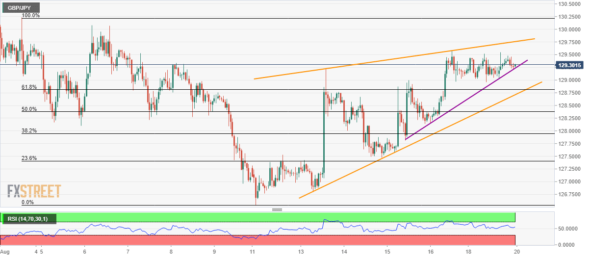 GBP/JPY rests on an immediate rising trend-line as it trades near 129.27 during the early Asian session on Tuesday.