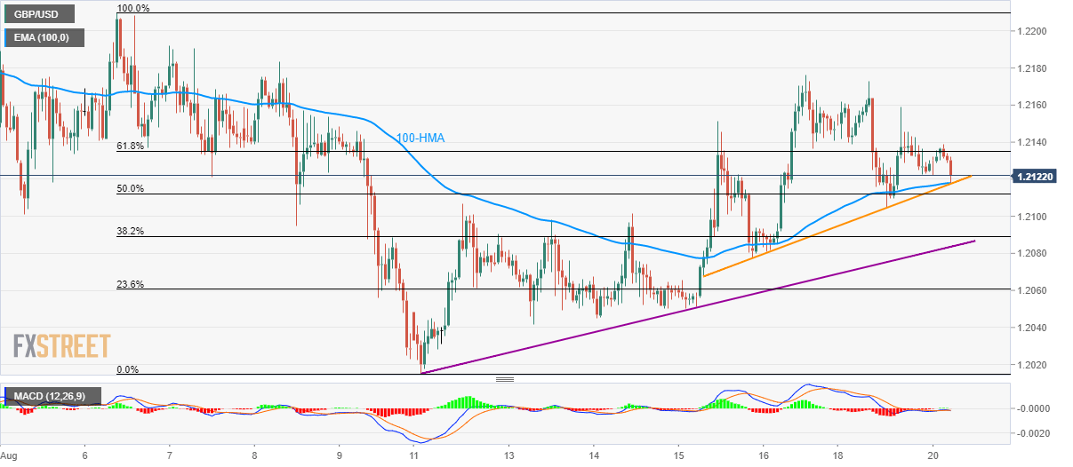 Despite its failure to sustain latest upswing, GBP/USD refrains from further declines as it rests on the key supports while taking rounds to 1.2125 ahead of the UK session opening on Tuesday.