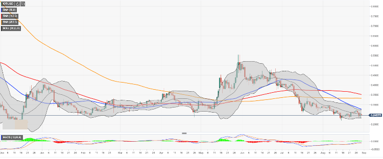 IOTA is the best-performing altcoin out of top-20 today. The coin has gained over 3% in recent 24 hours to trade at $0.2464 by the time of writing. Notably, the coin hit the recent low at $0.2330 on August 29 and managed to recover towards $0.2600 resistance before a new wave of bearish sentiments pushed it back below $0.2500 handle.