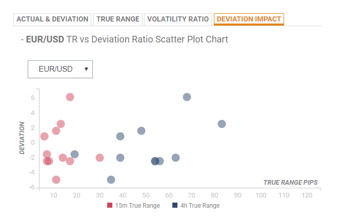 Readers can find FX Street’s proprietary deviation impact map of the event below. As observed the reaction is likely to remain confined between 10 and 30 pips in deviations up to 1.5 to -2, although in some cases, if notable enough, a deviation can fuel movements of up to 45-50 pips.
