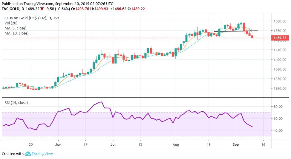 Gold technical analysis: Below $1,500, risks breaching three-month rising trendline