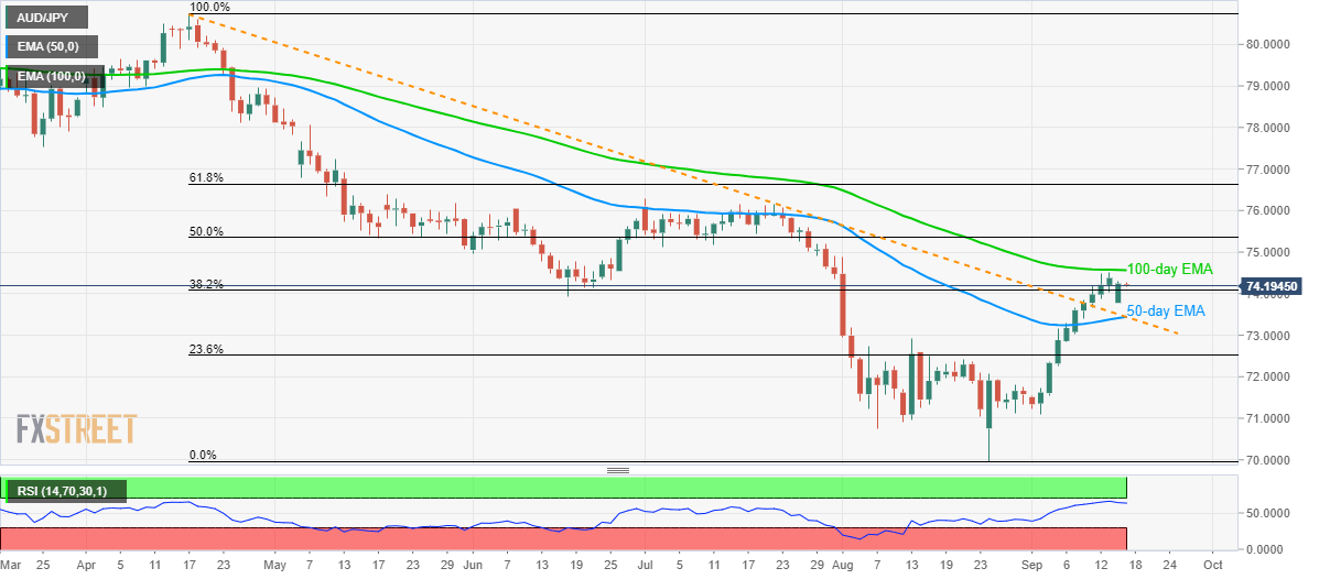 Meanwhile, an upside clearance of 100-day EMA near 74.56, could escalate the pair’s run-up towards 75.00 whereas 50% Fibonacci retracement level of 75.36 will please bulls then after.