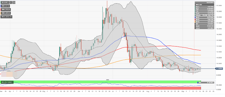 NEO touched $9.29 high during early Asian hours amid strong recovery from the recent low of $8.90. However, NEO/USD failed to hold the ground and retreated to $9.12 by the time of writing. The 20th largest digital asset with the current market value of $647 million has stayed unchanged both on a day-on-day basis and since the beginning of the day. NEO is most actively traded at Bitfinex against USDT. From the longer-term perspective, the coin bottomed out at $8.08 on September 10 and has been moving in a tight range ever since.