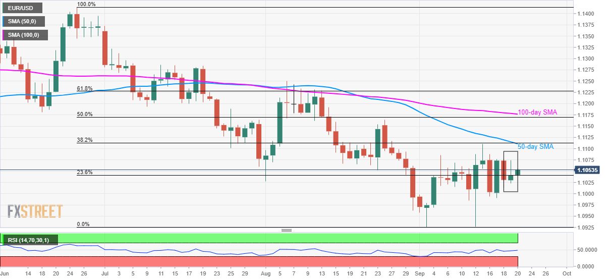 Having been supported by a bullish candlestick formation, EUR/USD takes the bids to 1.1050 during early Friday.