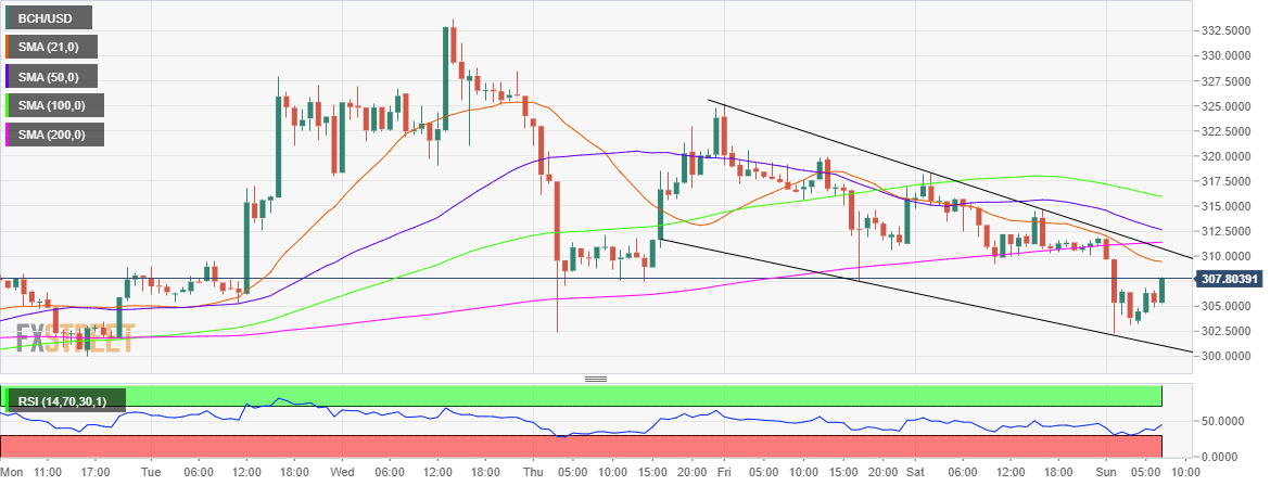 Bitcoin Cash (BCH/USD) pauses its tepid recovery from six-day lows of 302.22 on Sunday, as the bears look to extend the three-day losing into the weekly closing. The No. 4 coin breached Thursday’s low of 302.41 but managed to hold the 302 handle before recovering to now trade around 306.00. Despite the latest recovery attempt, the price is down 3% in the last 24 hours, standing at a market capitalization of $ 5.52 billion vs. $ 5.63 billion previous.