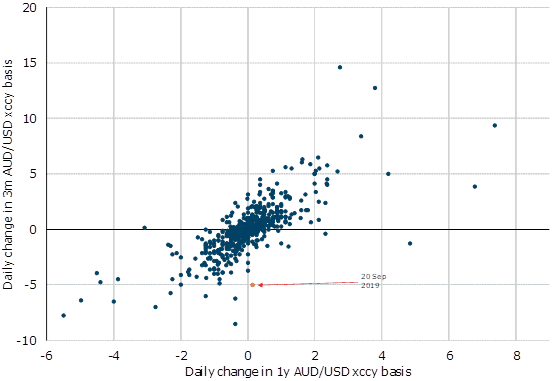 “Last week’s USD repo market gyrations had flow-on effects to AUD markets. The most pronounced was on Friday via FX forwards and cross-currency basis.
